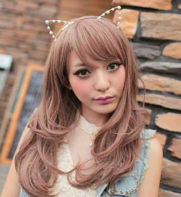 茶色と薄ピンクのロングフルウィッグ