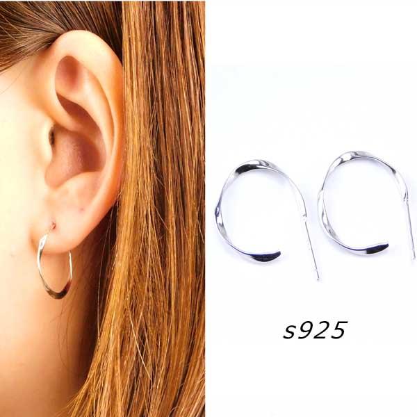 送料無料 両耳用 純銀 ピアス リング s925 シルバー ねじれ シンプル ワンポイント フープピアス 銀 プレゼント コンサバ フープ