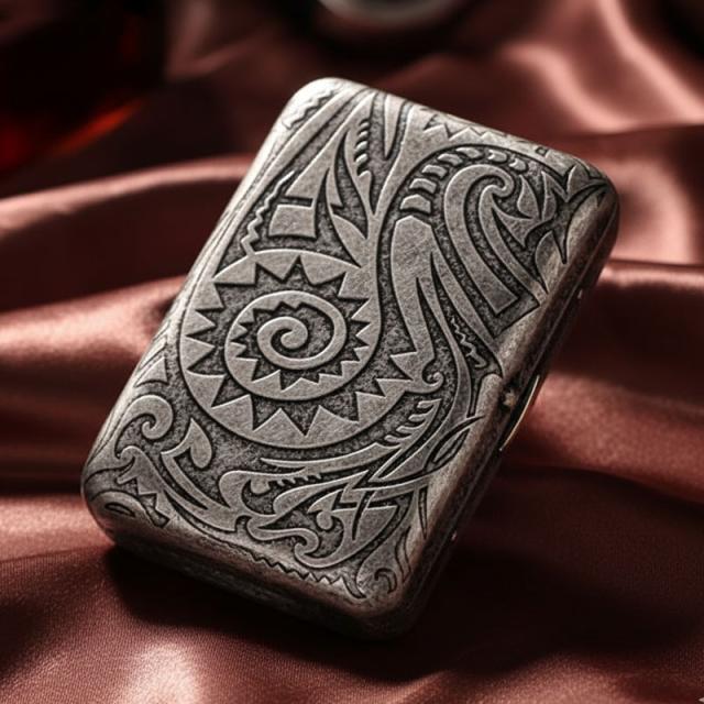 送料無料 トライバル柄のシガレットケース ユニークなデザイン シルバーカラー パンク系 タバコ 煙草 たばこ 灰皿 パイプ 煙草入れ