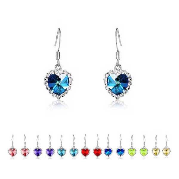 人工ダイヤが散りばめられた両耳用ハート型ピアス!