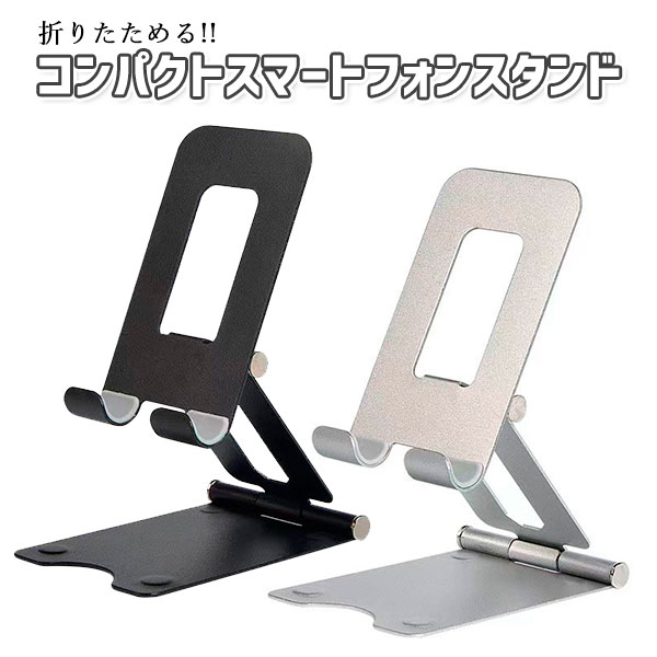 スマートフォン コンパクト スタンド ホルダー スマホ タブレット 金属 小型 ポケットサイズ 折りたたみ 角度調節 卓上 ブラック シルバー 送料無料 UNI