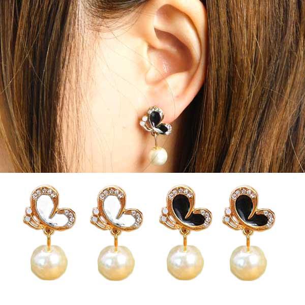 送料無料 両耳用 ピアス パール ワンポイント キュート 蝶 高級感抜群 レディース ビジュー バタフライ