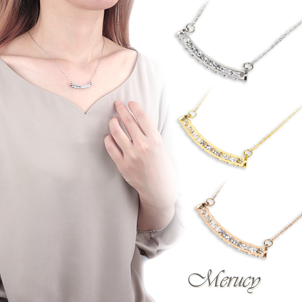 ちょっと大人め演出ネックレス ステンレス製で安価なのに高級感抜群! クリスタルジュエリーが胸元で輝いて気持ちも 大人めアップデート。医療でも使われる高品質の 316Lステンレスでアレルギーフリーです。