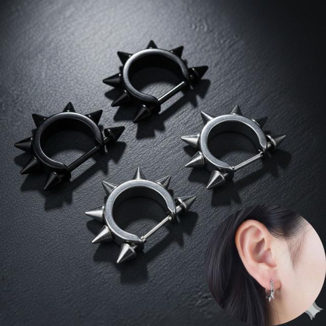 送料無料 両耳用 ステンレス トゲトゲ ピアス パンクアイテム メンズピアス ワンポイント ヴィジュアル系 ブラック シルバー 棘 スタッズ