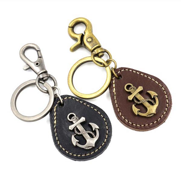 送料無料 キーホルダー かっこいい レザー 錨 お洒落 チャーム キーリング ブラック ブラウン