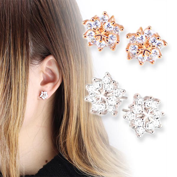 送料無料 両耳用 高級感抜群 ジュエリー 星 スター ビジュー フラワー 銅 ピアス 花 レディース ブロンズ ピンクゴールド