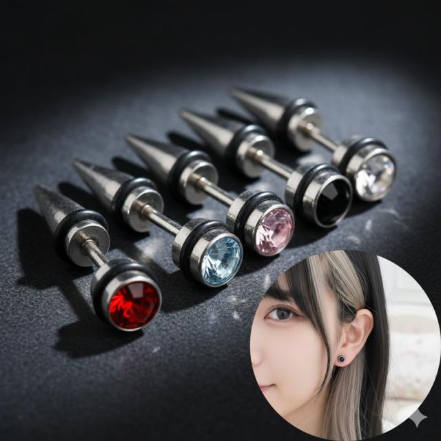 送料無料 両耳用 パンク ステンレス ジュエリー ピアス カラフル メンズピアス 宝石 レディースピアス シンプル ワンポイント トゲ キラキラ アレルギーフリー 金属アレルギー対応 サージカルステンレス