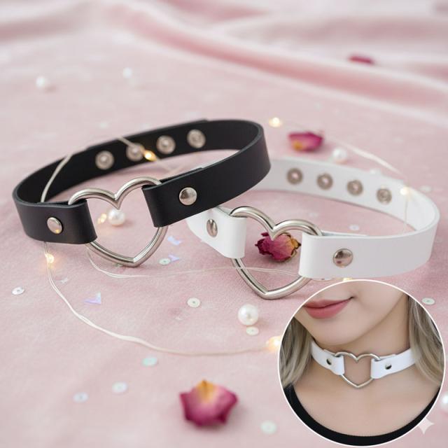 送料無料 ハート チョーカー 革 キュート 首輪 レディース ブレスレット 可愛い レザー 革 原宿系 ロリータ ゴスロリ ゆめかわ かわいい
