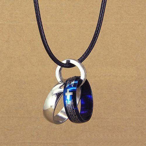 送料無料 十字架 ダブルリング ネックレス メンズネックレス ワンポイント リング カジュアル ペンダント シンプル クロス