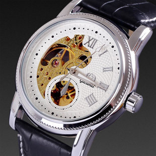 送料無料 メンズ腕時計 腕時計 革ベルト 月 自動巻き レザー スケルトン シースルー ゴールド 半月 フォーマル カジュアル ブラック オートマチック