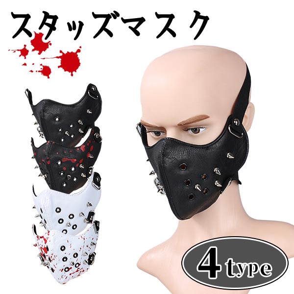 送料無料 パンクマスク カッコいい 血 模様 コスプレ 怖い 恐怖 ホラー イベント ライブ ファッション スタッズ カラスマスク ハロウィン 血のり トゲトゲ