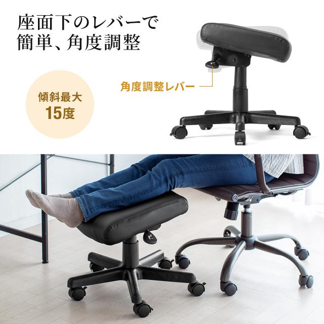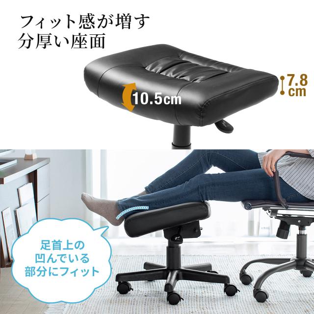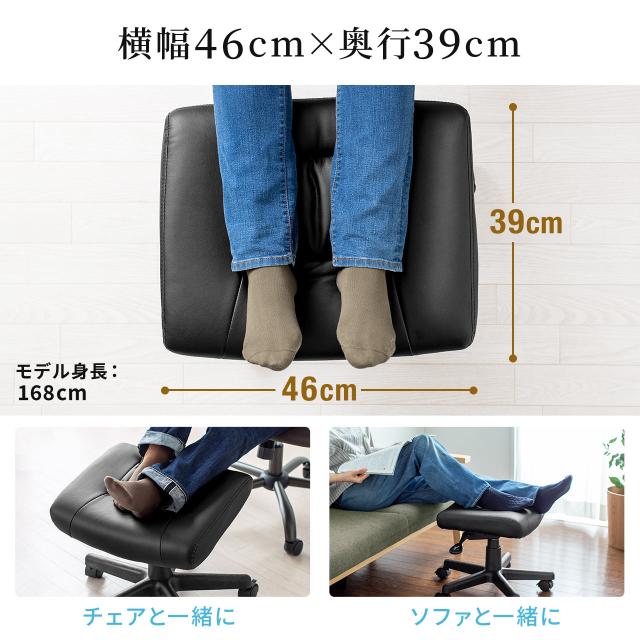 オットマン 角度調節つき PUレザー生地 ストッパー付きキャスター ブラック リラックス足置き台[100-SNC035ADBK]