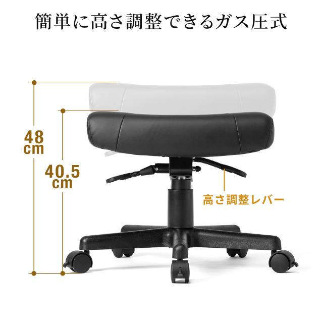 ■仕様:ガス圧リフト装置付き、座面傾斜機能(角度固定可)、ストッパー付きキャスター