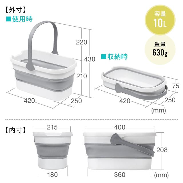 ●折りたたんでコンパクトに収納できるバケツです。●持ちやすい大きな取っ手付きです。