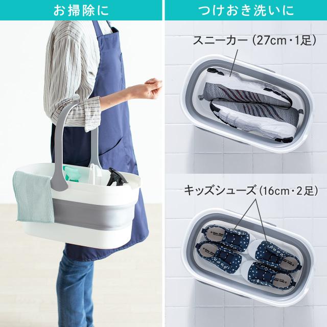 ⇒ご購入の前にご確認下さい持ち運びやすいハンドル付き。掃除や洗濯、アウトドア用品の小物入れ、防災グッズなどに使用できる折りたたみバケツ。【WEB限定商品】
