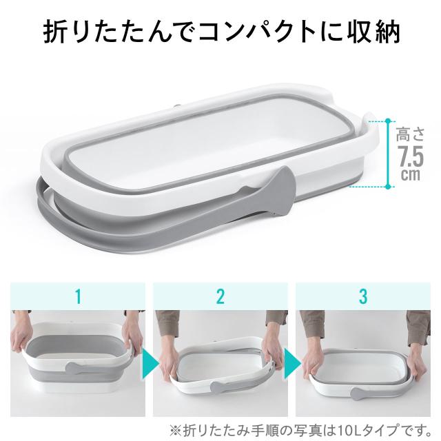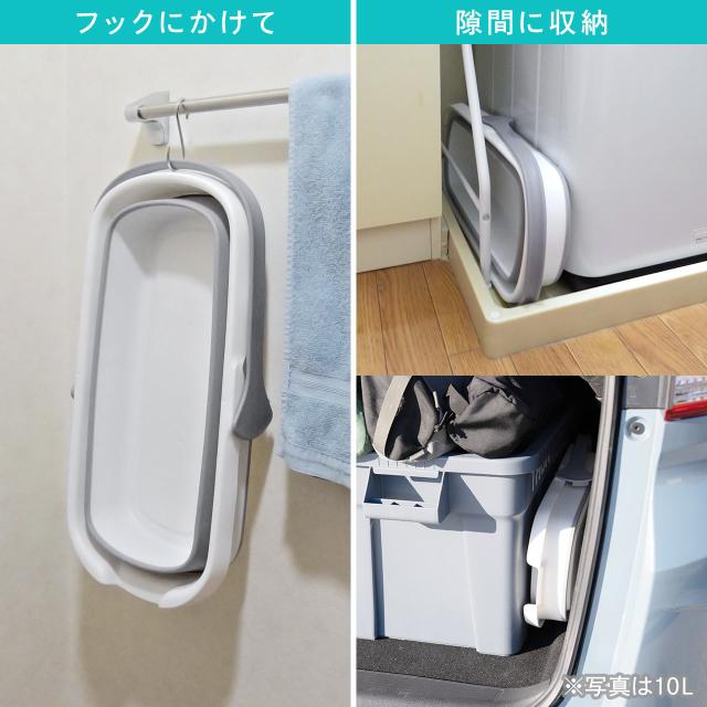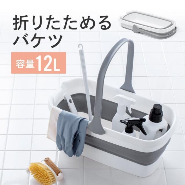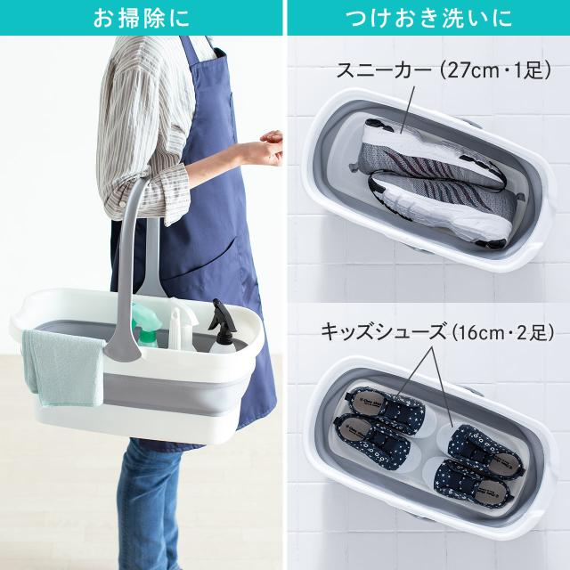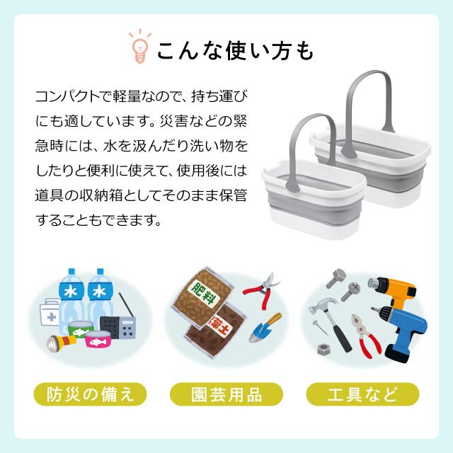 ⇒ご購入の前にご確認下さい持ち運びやすいハンドル付き。掃除や洗濯、アウトドア用品の小物入れ、防災グッズなどに使用できる折りたたみバケツ。【WEB限定商品】