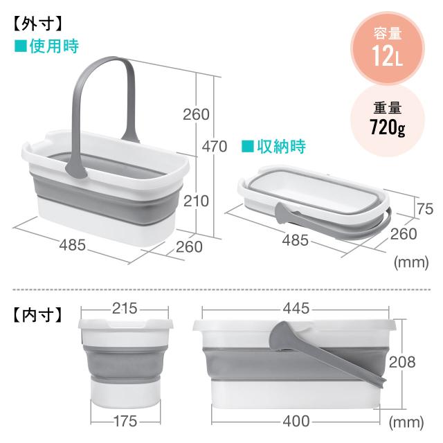 ●折りたたんでコンパクトに収納できるバケツです。●持ちやすい大きな取っ手付きです。