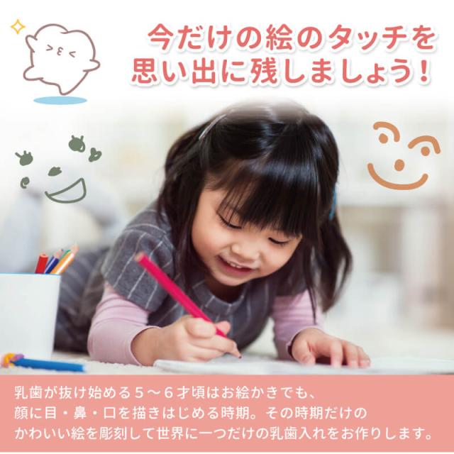 お子様の抜けた乳歯、どうしてますか? しかも、その乳歯ケースに自分の絵が彫刻されていたら… 5〜6才になると、乳歯が抜けて永久歯にはえかわりはじめます。 そんな子供たちの不安が少しでも軽くなれば・・ すべすべでとっても可愛い乳歯ケース。 ご購入いただいたお客様からも そしてその時期はちょうど目・鼻・口のパーツを認識して顔を描きはじめる頃。 これからずっと保管していくものだからこそ 品質にもこだわりました。 その厳選された桐材を自動制御の切削マシンで精密に削り出します。 粗目から中目、細目と研磨を繰り返し、納得いくまで磨きこんだ桐の乳歯ケース。 保管方法にも工夫を凝らしました。 “これはいつ抜けた歯?” “これはどこの歯?” 付属の脱脂綿を詰めてから入れていただくので、しっかりと固定可能。 投げる場所がない。捨てられない。とお悩みの 歯の生え変わりはこどもの成長を感じることができる、人生の大切な1ページ。 名入れギフト専門店の当店では、熟練の技術者が一点一点 心を込めて ずっと消えない彫刻は、末永く、大切にお使いいただけることでしょう。 私たちは、贈る人、贈られる人、両方の笑顔を想いながら商品を送り出します。 |