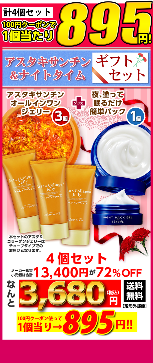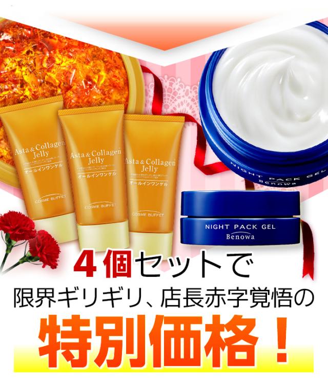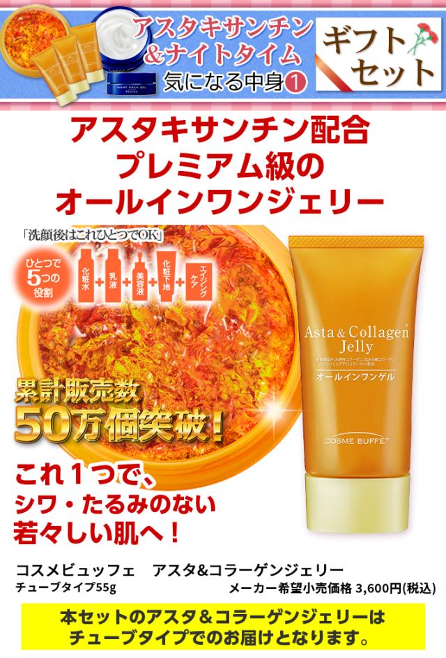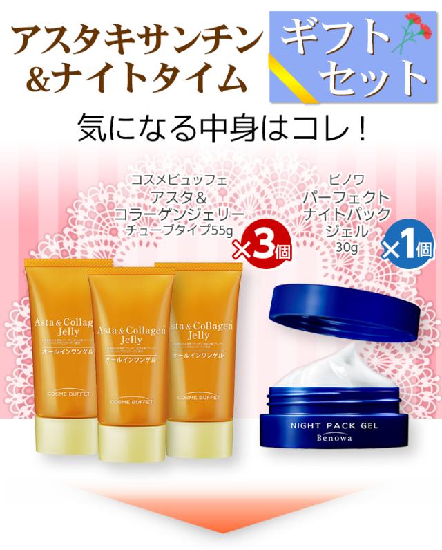 内容量:アスタ&コラーゲンジェリー チューブタイプ 55g 3個 + パーフェクトナイトパックジェルR 30g 1個