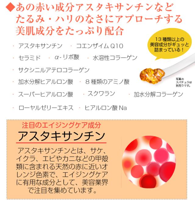 - 使用し始めて、まだひと月経っていませんがアスタキサンチンの赤と肌に乗せて伸ばした時のもちっとした手触りが今後の肌の変化を期待させてくれます。わくわくしながら使用中です。 ナイトパックジェルは、まだ使用していません。