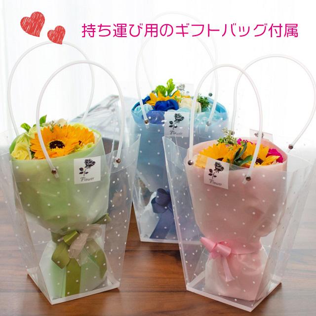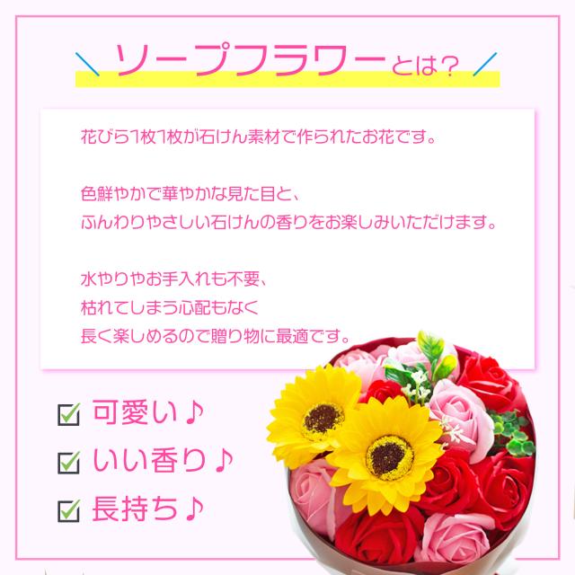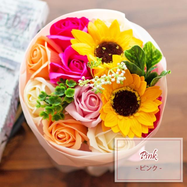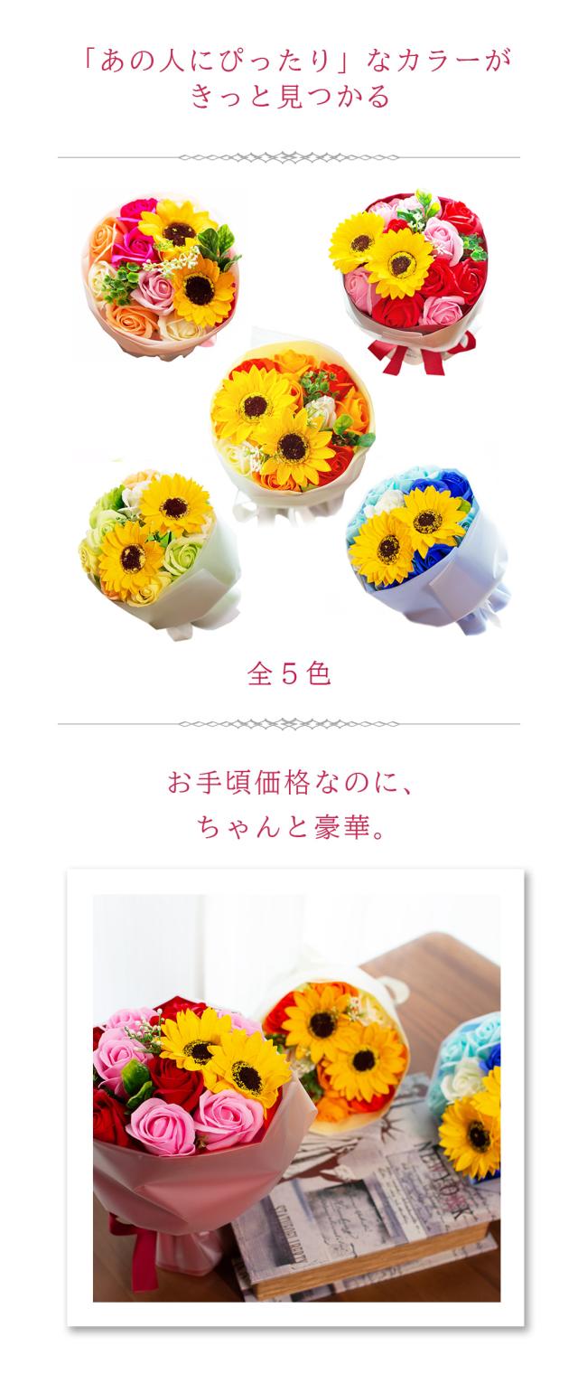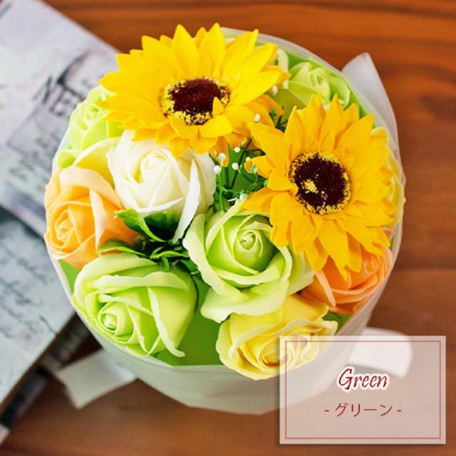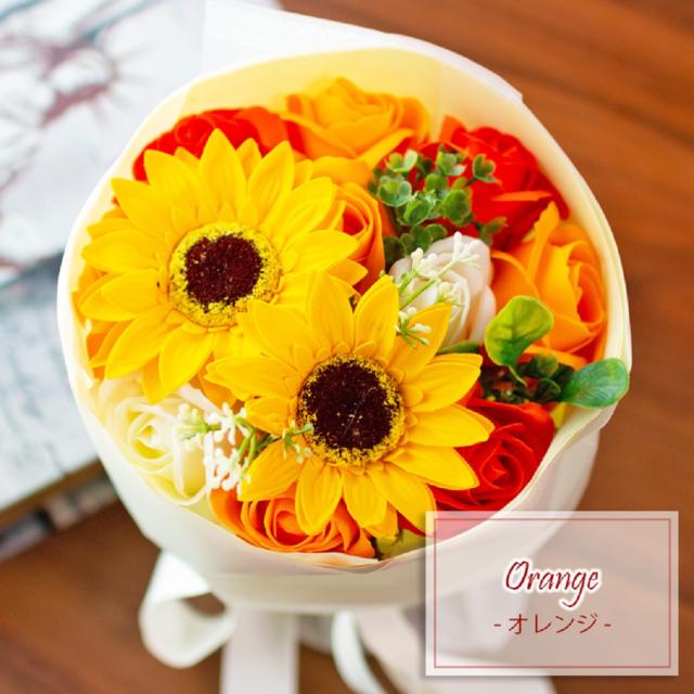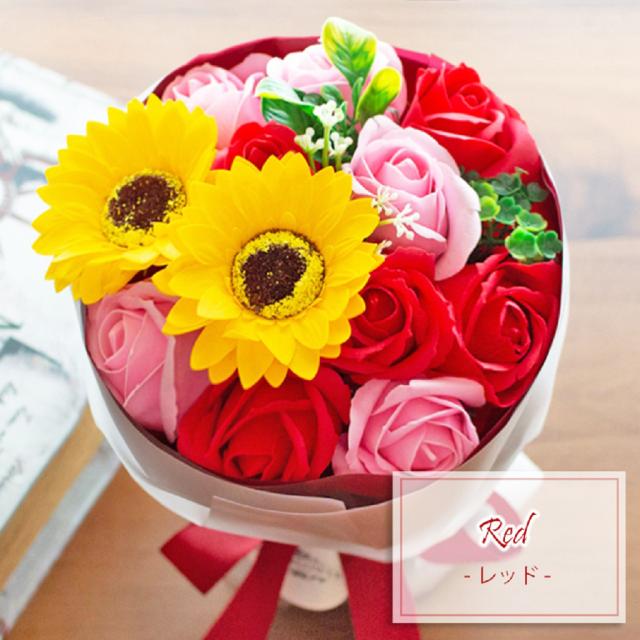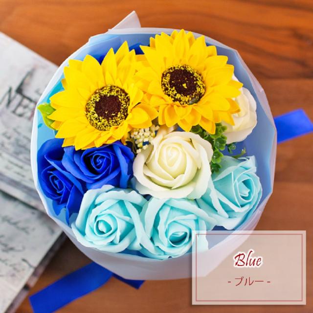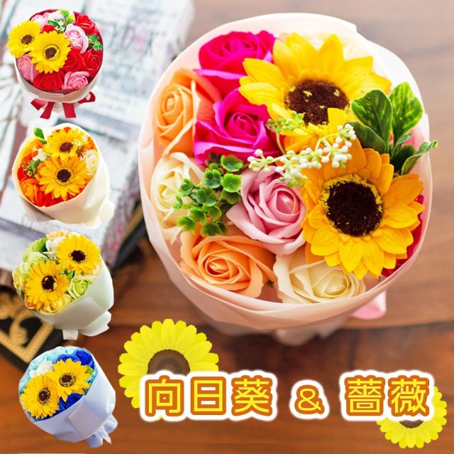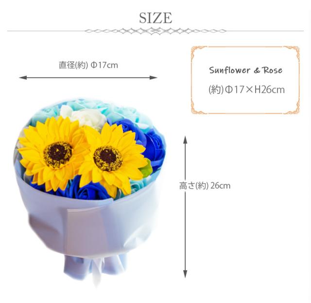 ソープフラワー ひまわり&ローズブーケ 2025年ver. バラ ヒマワリ 薔薇 向日葵 花束 誕生日 母の日 父の日 女性 妻 結婚祝い 退職祝い お見舞い 送別会 発表会 プレゼント ギフト 石鹸素材 枯れないお花 ギフトバッグ付き メッセージカード付き