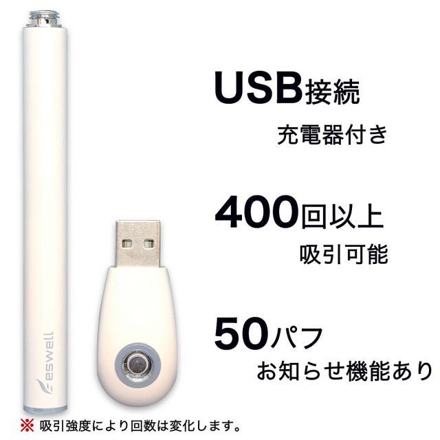 ホワイト プルテク 対応 バッテリー2本セット eswell バッテリー2本 と 充電器2個のセット メール便 送料無料 プルテク 互換 タバコカプセル 対応 カートリッジ 電子タバコ 充電器 セット 少し長いタイプ ハイパワー C-TEC対応 ベイプ VAPE プルテク 互換 バッテリー