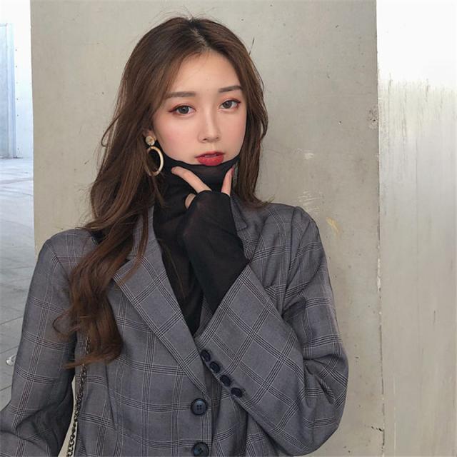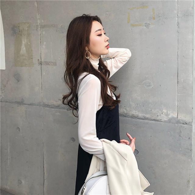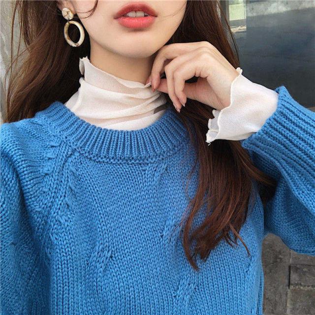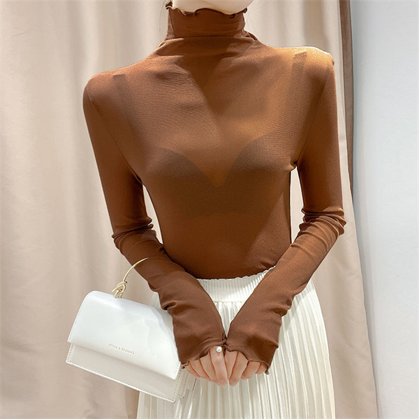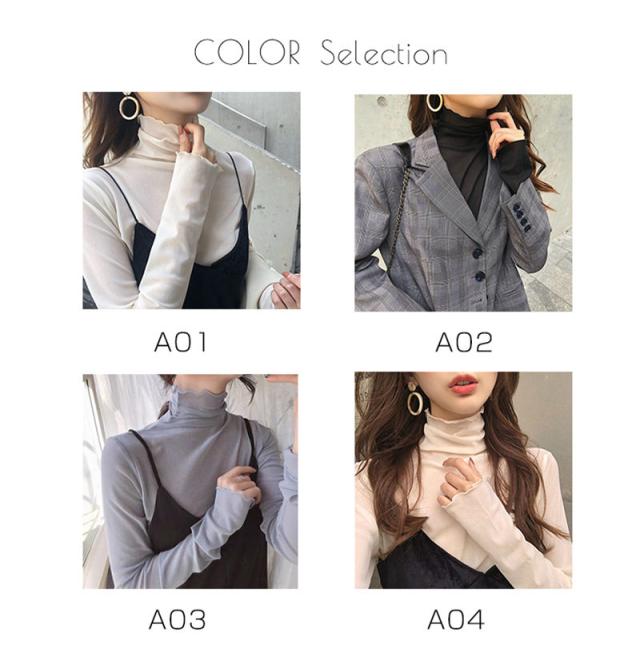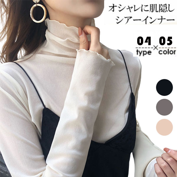 ポイント超超祭 <オプション2点目から780円でゲット!>短納期 シアートップス フリル カットソー レディース インナー シャツ ハイネック タートルネック 透け感 春 重ね着 長袖 薄手 ブラウス チュール