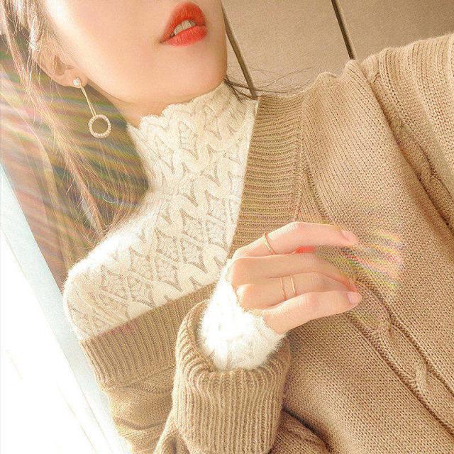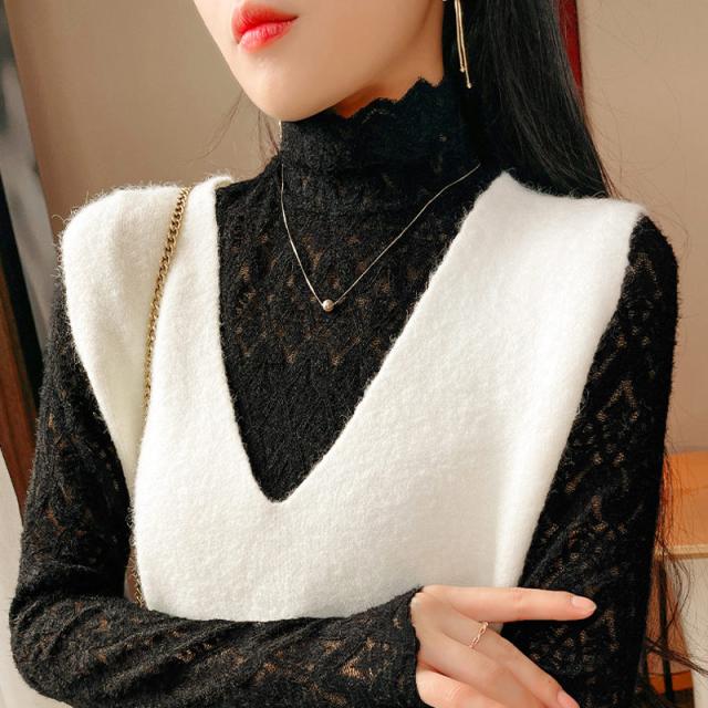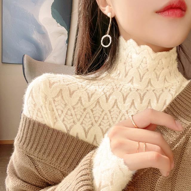 ポイント超超祭 シャツ レース ブラウス インナー 透け感 Tシャツ シースルー レディース ハイネック ボトルネック チュール トップス 長袖 セクシー