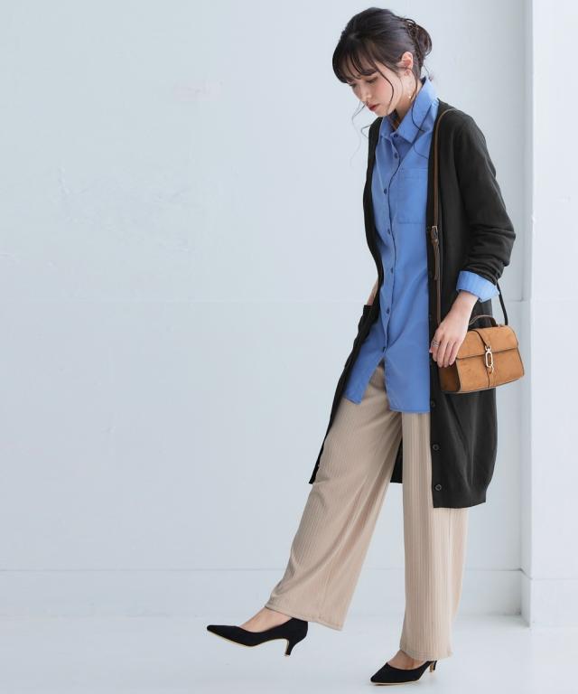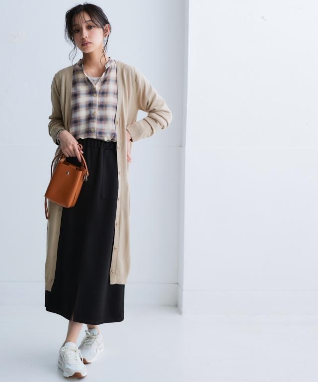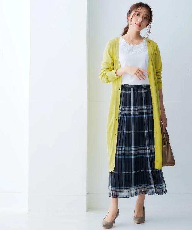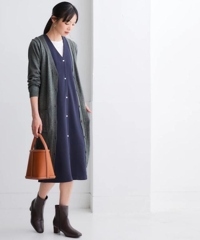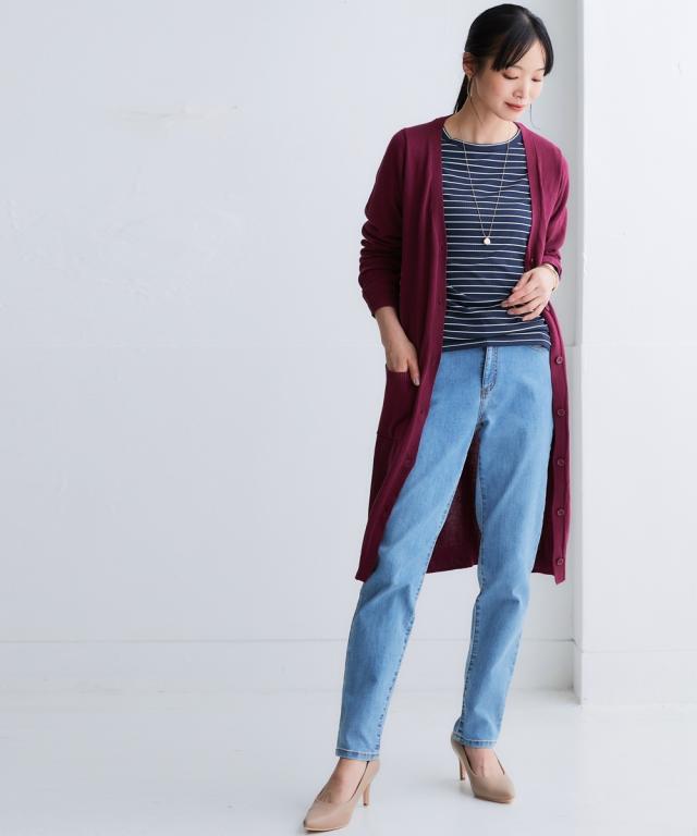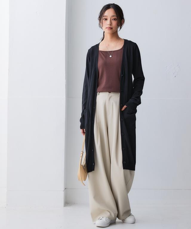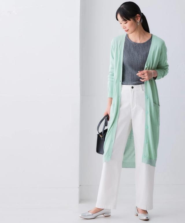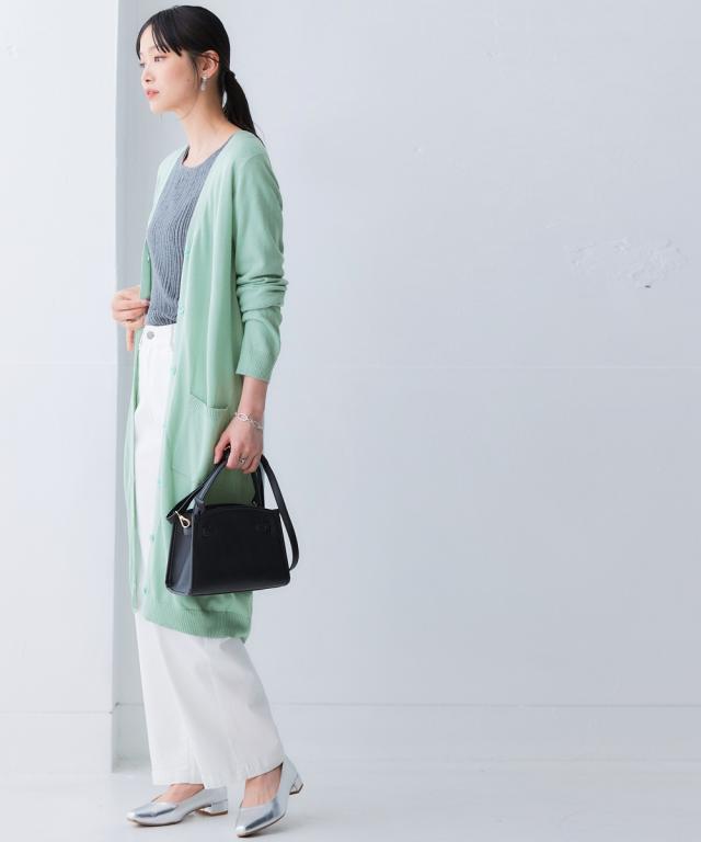 ニッセン人気商品!あると便利な【UVカット】シンプルVネックロング丈ニットカーディガンに待望の新色登場。 お客様の声にお応えして身生地同色ボタンにしました。