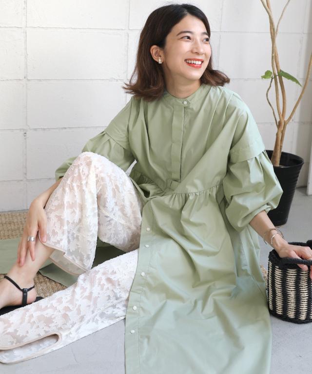 旬なバンドカラーでで抜け感と清潔感も忘れずに。