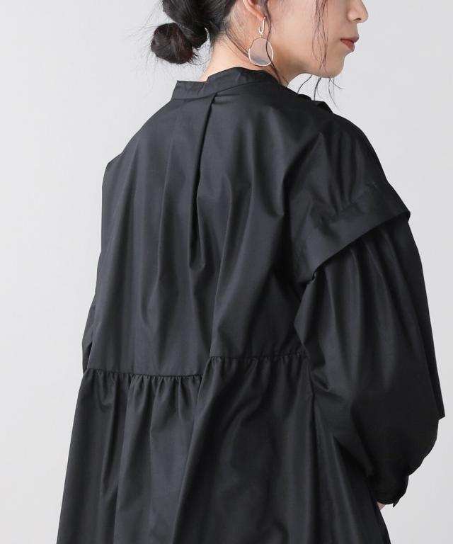 ボリュームスリーブの袖口にもシャーリングを施しトレンドライクに仕立てた一枚です。
