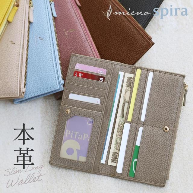 長財布 レディース 薄い ブランド mieno spira 薄型 牛革 お札が折れない カードたくさん 【ネコポスで送料無料】 上品 スリム 二つ折り キャッシュレス 機能的 大容量 軽量 薄型財布 コンパクト財布 (07000499r)