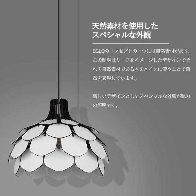 EGLOのコンセプトの一つには自然素材があり、この照明はリーフをイメージしたデザインでそれを自然素材である木をメインに使うことで自然を表現しています。