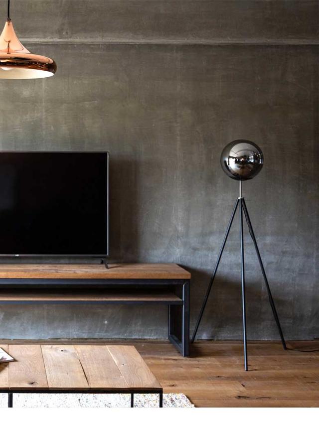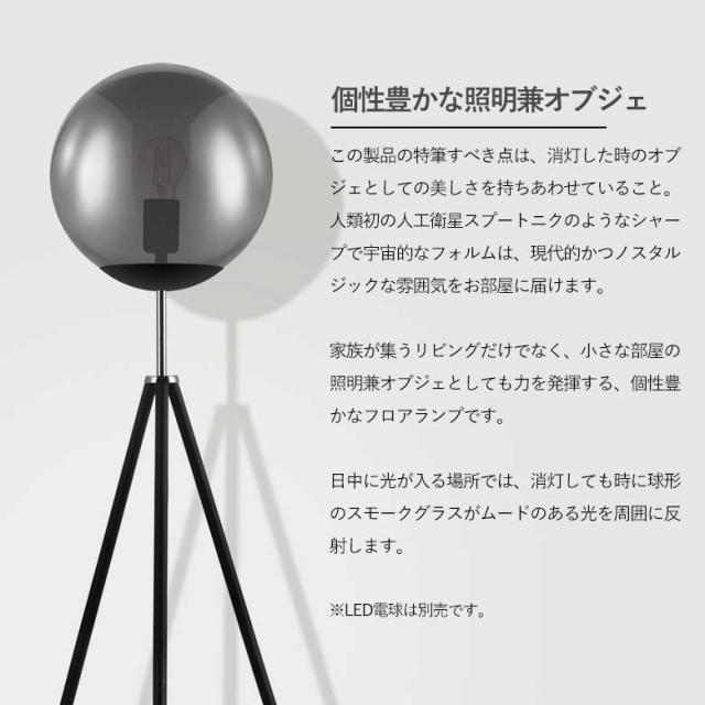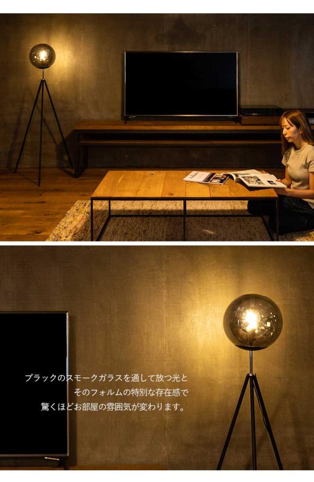 ガラスボールとどこでも設置できる三脚の組み合わせ。スモークグラスを使ったガラスボールは光が直接当たらないので光がやわらかくCORSAVYよりも明るさではなくムードを作る照明としての立ち位置です。