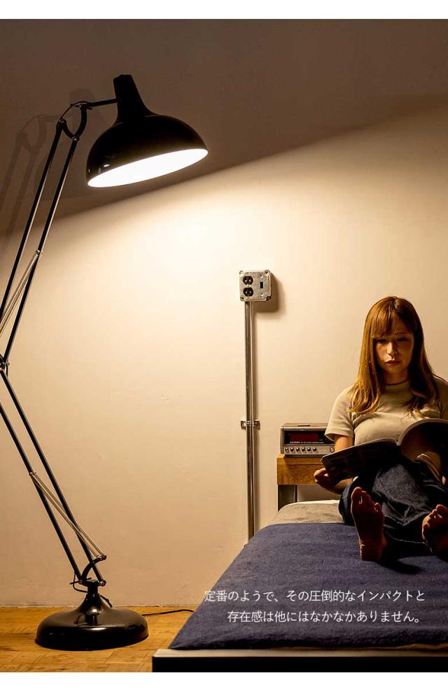 シンプルなヴィンテージスタイルのフロアライトで、高さも自由自在に変更可能で実用性もたいへん高いのが特徴です。
