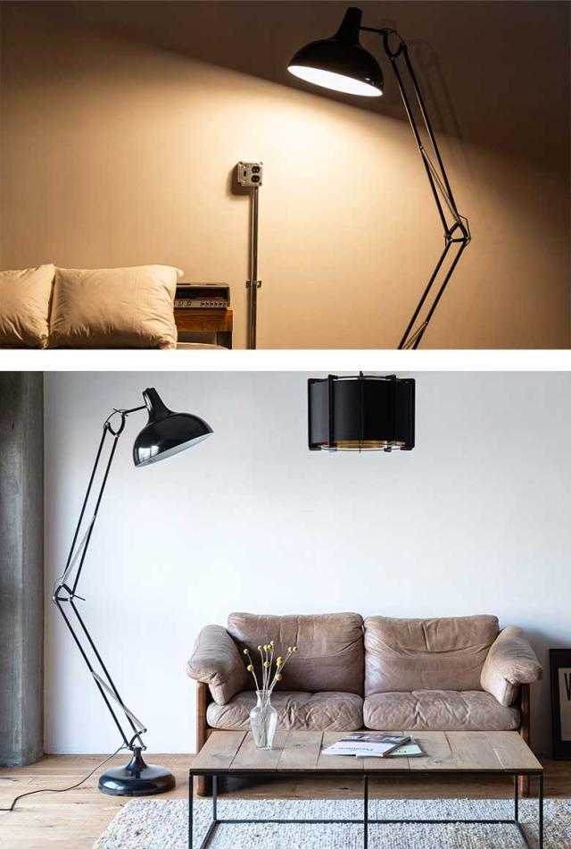見慣れているけど見飽きない永遠のスタイリング。かつて博物館用に特注されたジャイアントアングルポイズに影響をうけたこのタイプは圧倒的なインパクトでお部屋を彩ります。
