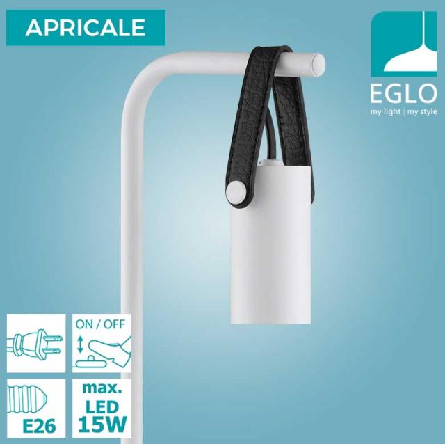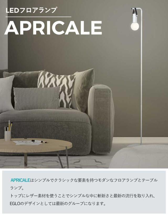 APRICALEはシンプルでクラシックな要素をもつモダンなフロアランプとテーブルランプ。トップにレザー素材をつかうことでシンプルななかに斬新さと最新の流行を取り入れ、EGLOのデザインとしては最新のグループに入ります。
