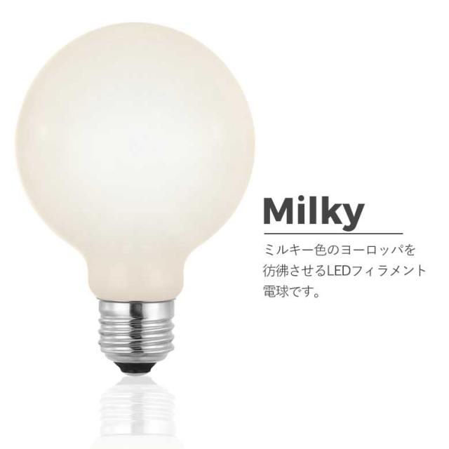 ミルキー色のヨーロッパを彷彿させるLEDフィラメント電球です。