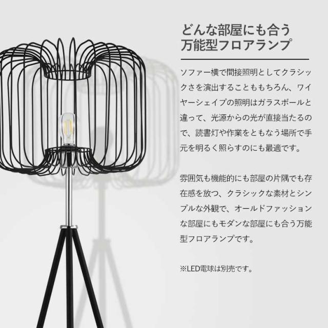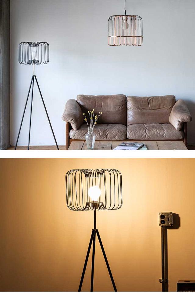 ワイヤーシェイプと三脚はEGLOでもあまりない組み合わせ。ワイヤーシェイプのヴィンテージ感とストレートでシンプルな外観の照明をフロアタイプにすることでどこにでも設置できるように設計しました。