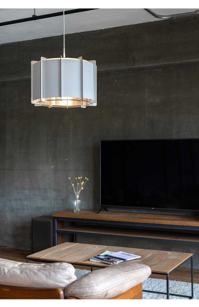 基本的なつかいかたはリビングルームのテーブルの上から吊るすクラシックなスタイルをイメージして作っています。2種類の大きさがあるので、部屋やテーブルの大きさによって選択でき、シングル世帯でもファミリーでも使用が可能です。