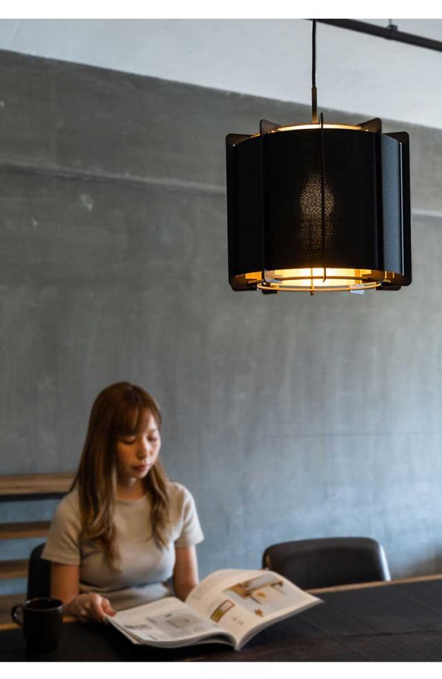 ブラックとゴールドの組み合わせは強いコントラストがフォルムを引き立て、本体が暗色であることで、光を透過しにくく同じ明るさでも間接的な明るさを表現します。