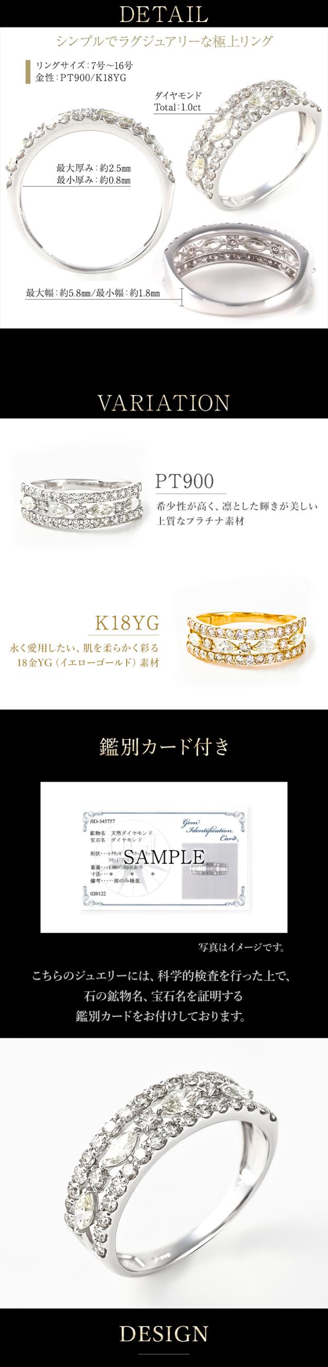 ダイヤモンドをトータル【 1.0ct 】使用した贅沢なダイヤリング。シンプルながら存在感とボリュームのあるデザイン。精巧なカットの美しさだけでなく、光を最大限取り込み、つけ心地にもこだわりました。PT900(プラチナ)と K18(18金)の2種類からお選びいただけます。「 ダイヤの指輪 」は、女性に喜ばれる、人気の指輪。大切な妻へ、奥さんへ、記念日の贈り物やギフト・プレゼントとしてもおすすめです。