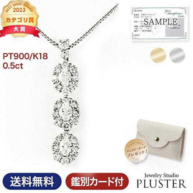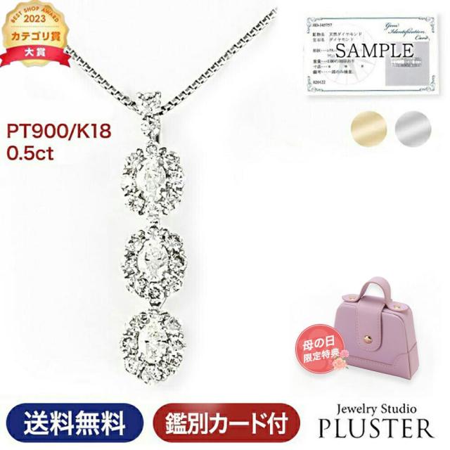 ダイヤモンド ネックレス レディース プラチナ スリーストーン ダイヤネックレス 0.5ct トリロジー PT900 18k K18 18金 ペンダント シンプル ダイヤ ダイヤモンドネックレス ジュエリー アクセサリー 限定BOX プレゼント 女性 誕生日 結婚記念日 アクセサリー 母の日