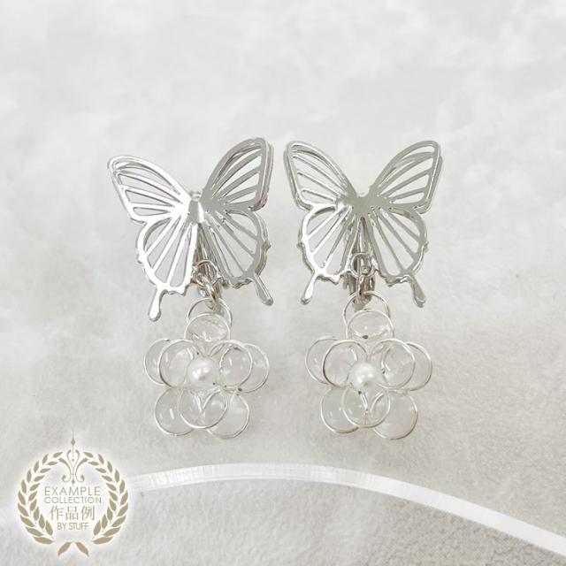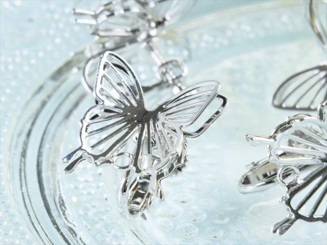 イヤリングパーツ ニッケルフリー 変退色防止加工済 立体の蝶 アクセサリー パーツ シルバー 2ペア バタフライ 金属アレルギー対応 問屋