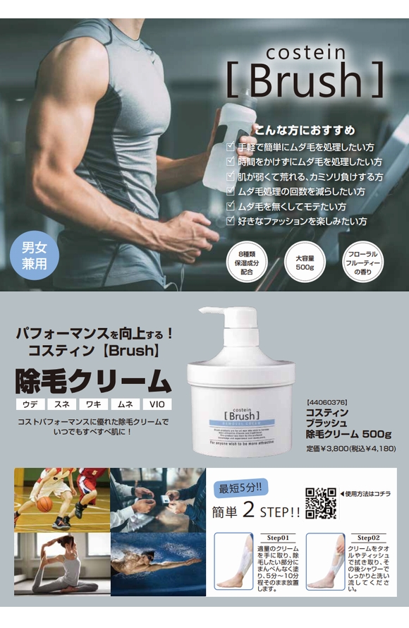 コスティン ブラッシュ 除毛クリーム 500g COSTEIN Brush【医薬部外品】ムダ毛処理 ヘアリムーバルクリーム 脱毛 removal cream 男女兼用 除毛剤 脱毛剤 (送料無料)