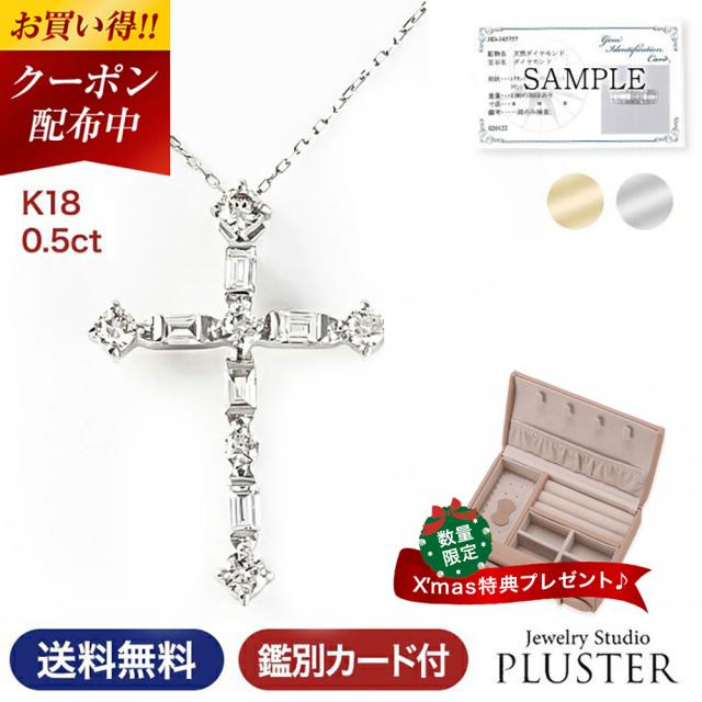ダイヤモンド ネックレス レディース クロス ダイヤネックレス 0.5ct 18k K18 18金 WG YG 十字架 クロスペンダント ペンダント シンプル ダイヤ ダイヤモンドネックレス ジュエリー アクセサリー 限定BOX クリスマス プレゼント 女性 誕生日 妻 誕生日 アクセサリー