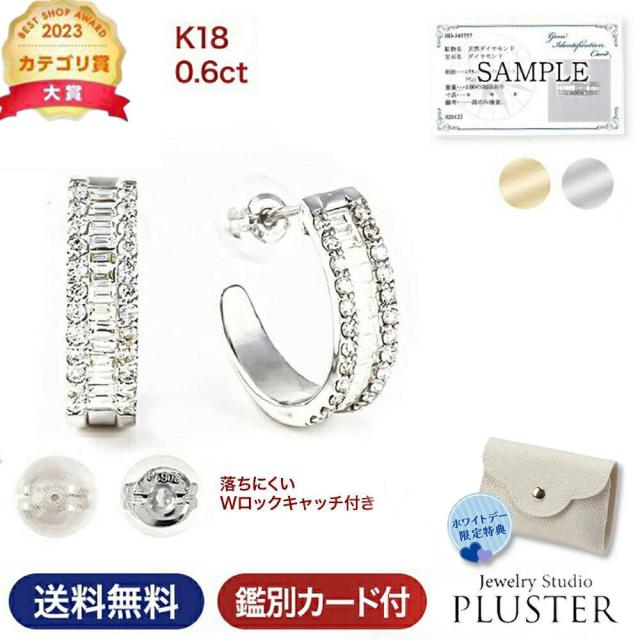 ピアス レディース 18金 ダイヤモンド 18金 フープピアス ダイヤピアス 0.6ct エタニティ 18k K18 WG YG ゴールドピアス 両耳用 シンプル ダイヤ ダイヤモンドピアス メンズ ジュエリー アクセサリー 限定BOX プレゼント 女性 誕生日 結婚記念日 妻 誕生日 ホワイトデー