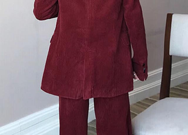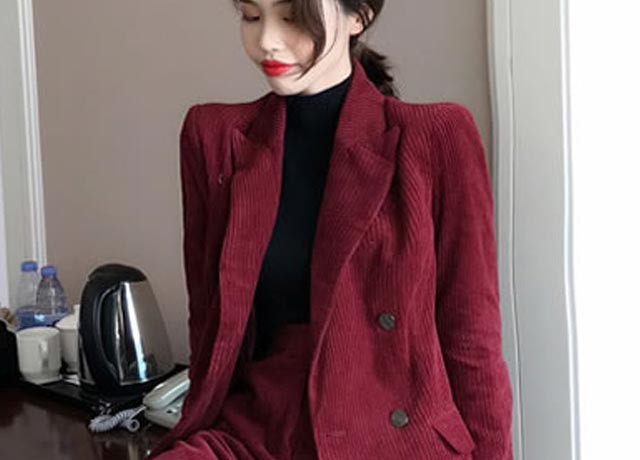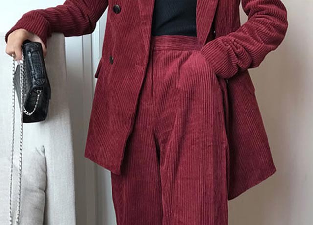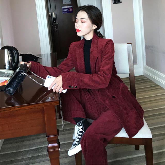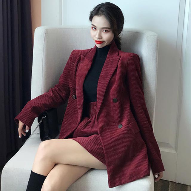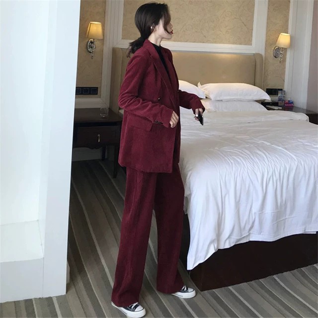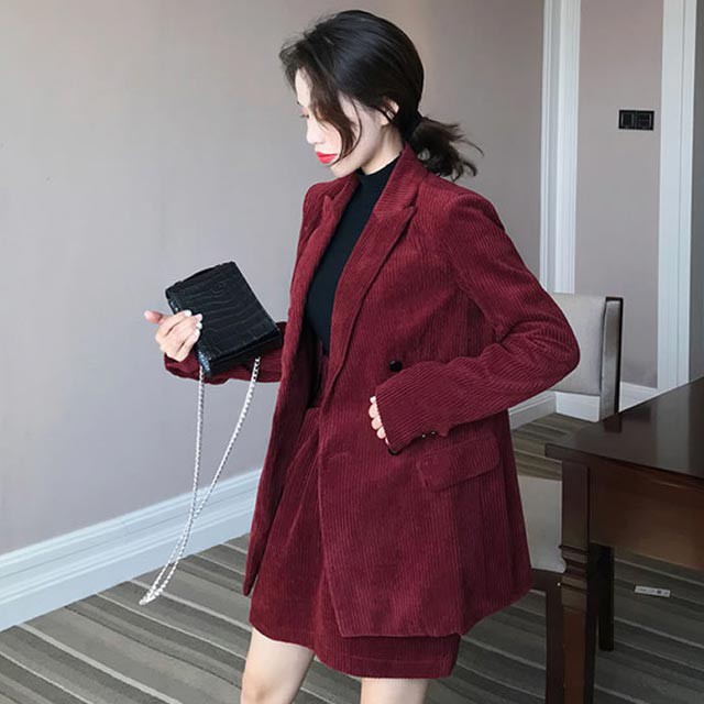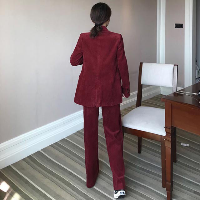 ワン赤 パンツスーツ レディース コーデュロイ スーツ 2点セット スカートスーツ 韓国風 カジュアル 通勤 通学 20代 30代 40代 春秋 新作