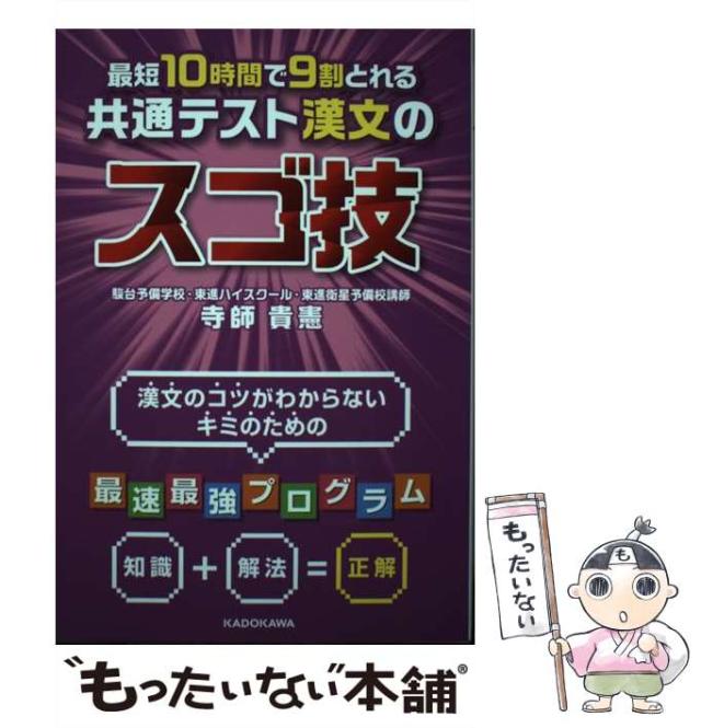 商品名:【中古】 最短10時間で9割とれる 共通テスト漢文のスゴ技 / 寺師貴憲 / KADOKAWA [単行本]【メール便送料無料】