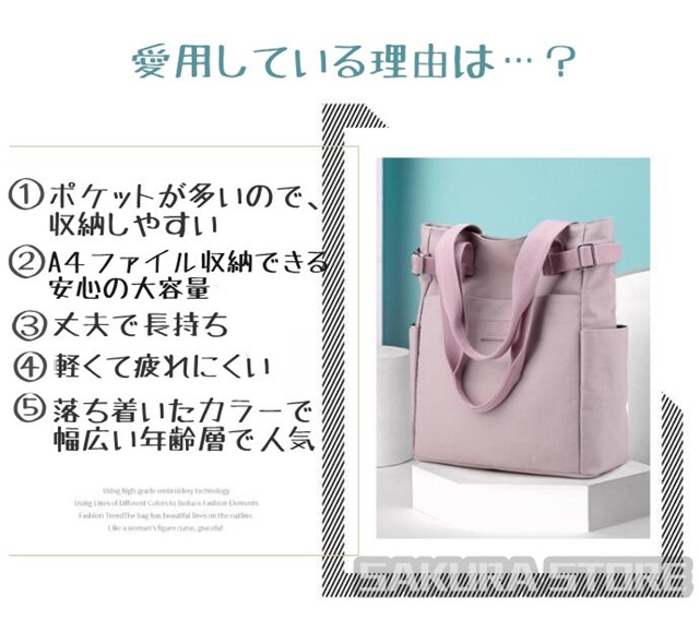 - 通学用のトートバッグとして購入しました。 ネイビーを選びましたが、落ち着いた色合いで気に入っています。 私は普段から荷物が多くて、鞄の中がいつもゴチャついてしまうのが悩みでした。こちらの商品は、とにか...